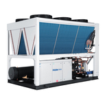 a、高效干式蒸發器 具有二次均勻分液裝置,使換熱充分;出口為過熱氣體,不用擔心回液;自然回油,不需回油裝置;完全蒸發換熱,傳熱效率穩定可靠 b、翅片換熱器 翅片換熱器采用高效換熱器+鋁箔機械漲接而成;精確傳熱計算技術;機組換熱器與風機匹配;優化盤管V型結構,合理的夾角設計;換熱空間內的流場更加均勻。 c、板式換熱器作為經濟器,提高機組性能 機組采用新型高效板式換熱器作為經濟器,提高機組過冷度18度,COP提高5%;有效降低機組排氣溫度。